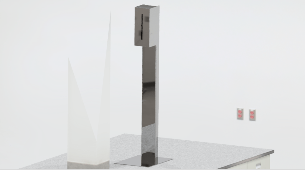 Hand Sanitizer dispenser otomatis dengan konsep standing sehingga tidak memerlukan meja tambahan. Ukuran compact , tidak memerlukan space besar untuk peletakannya